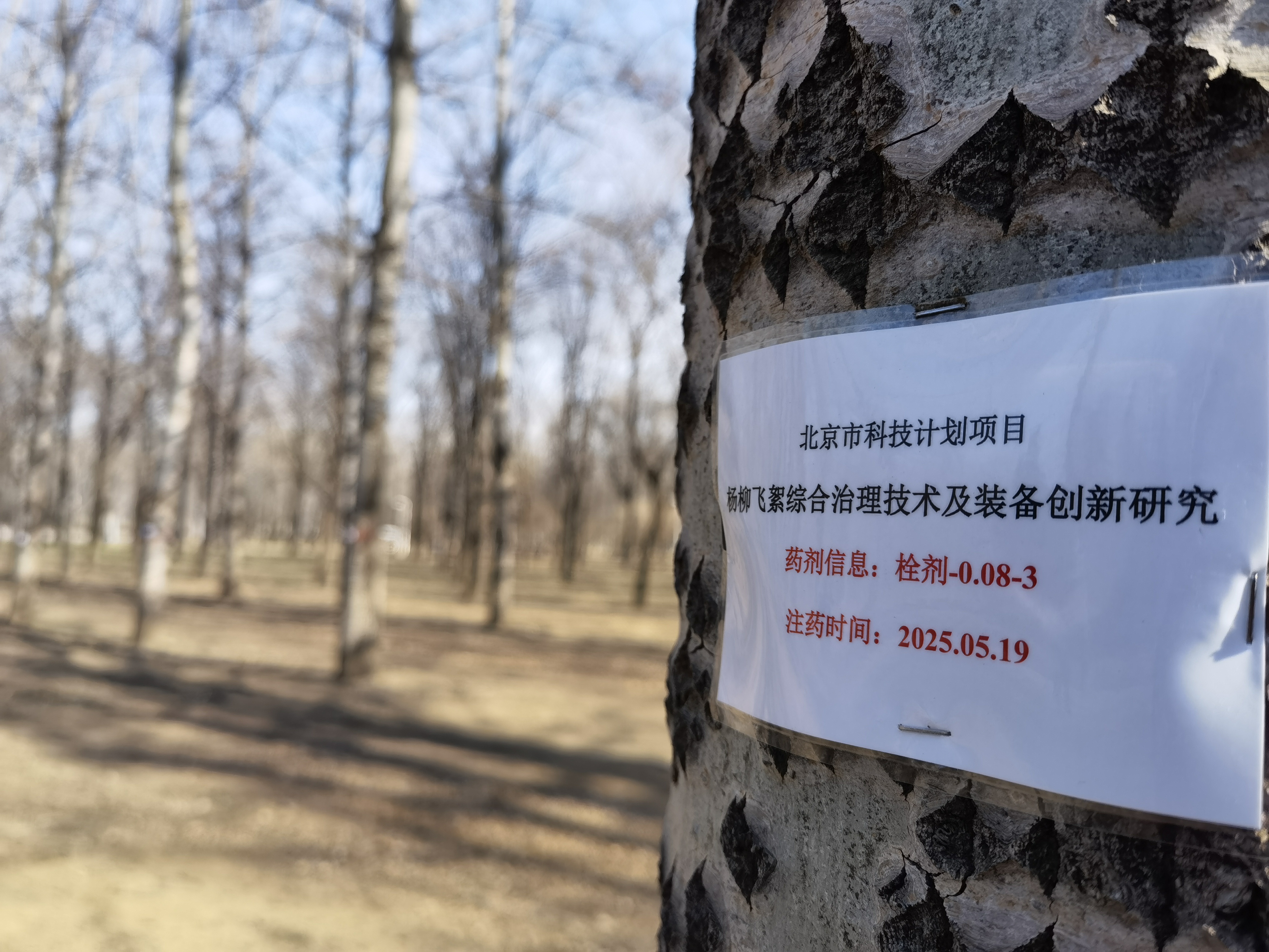 每年四五月份,北京都会进入杨柳飞絮高发期,漫天飞舞的毛毛,让过敏人群苦不堪言。在顺义一处林场实验地,许多杨树却“光秃秃”的,枝条上不见任何飞絮——这是中国农业大学团队研发的杨柳飞絮抑制剂带来的变化。一颗白色小药丸注入树干,通过纳米缓释技术将赤霉素缓慢释放,让雌树从“生殖生长”转向“营养生长”,一次注入至少管两年。这项“黑科技”今年将在北京更大范围推广,为困扰城市多年的飞絮问题提供全新解决方案。