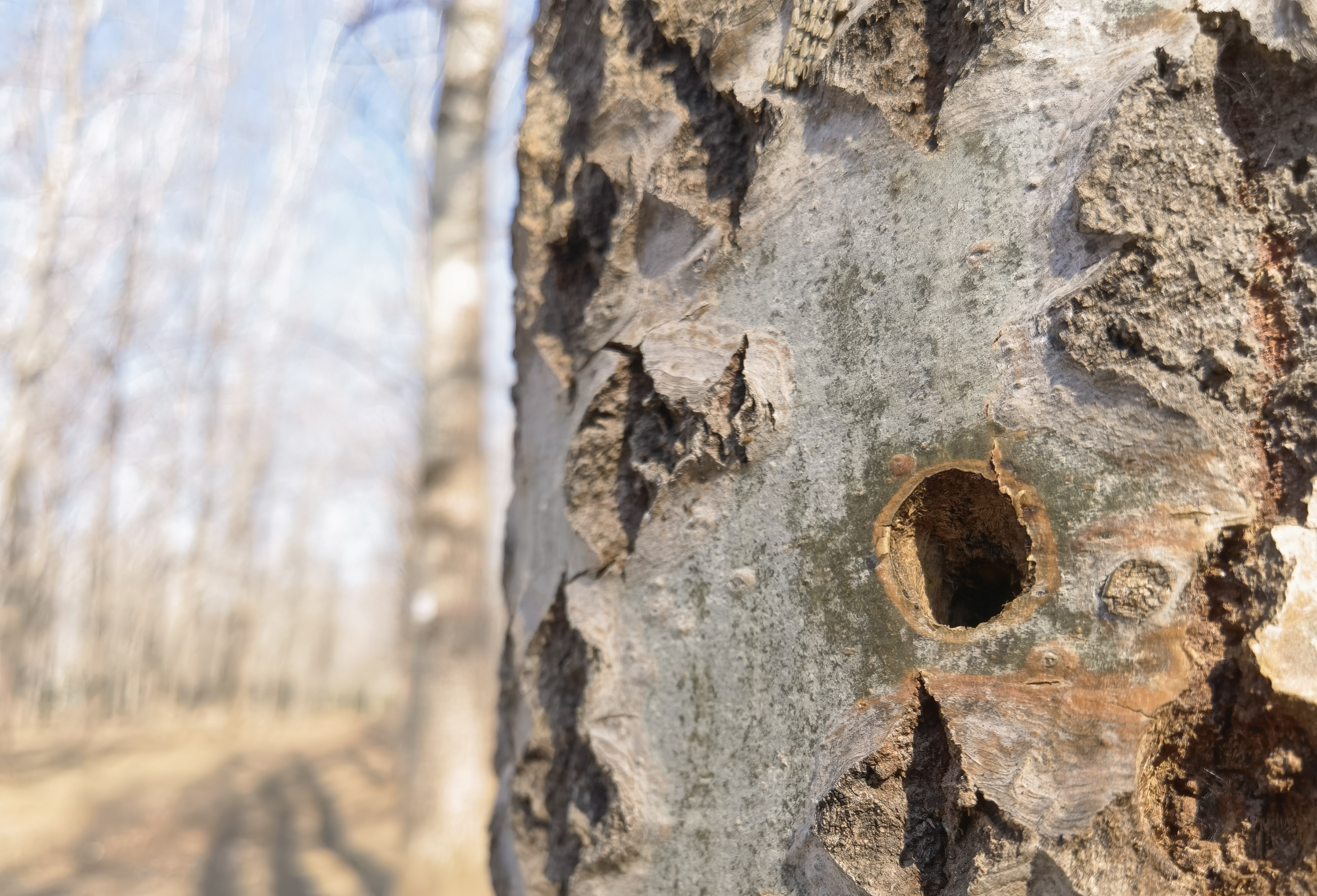 注入抑制剂之后留下的小树洞,内部已经愈合。新京报记者 周怀宗 摄