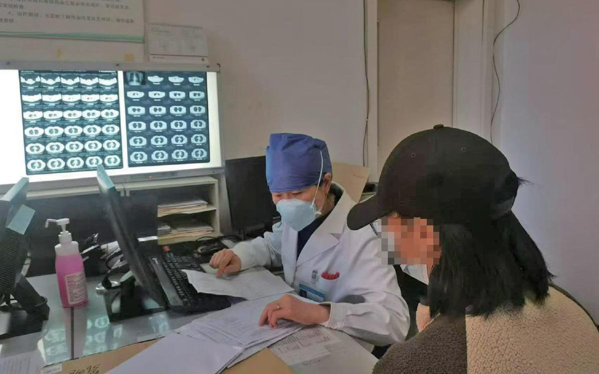 北京市疾控中心结核病门诊部主任医师李波在给患者看诊。受访者供图