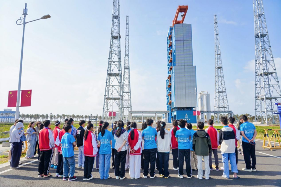 学生们参观海南商业航天发射场一号发射工位。主办方供图