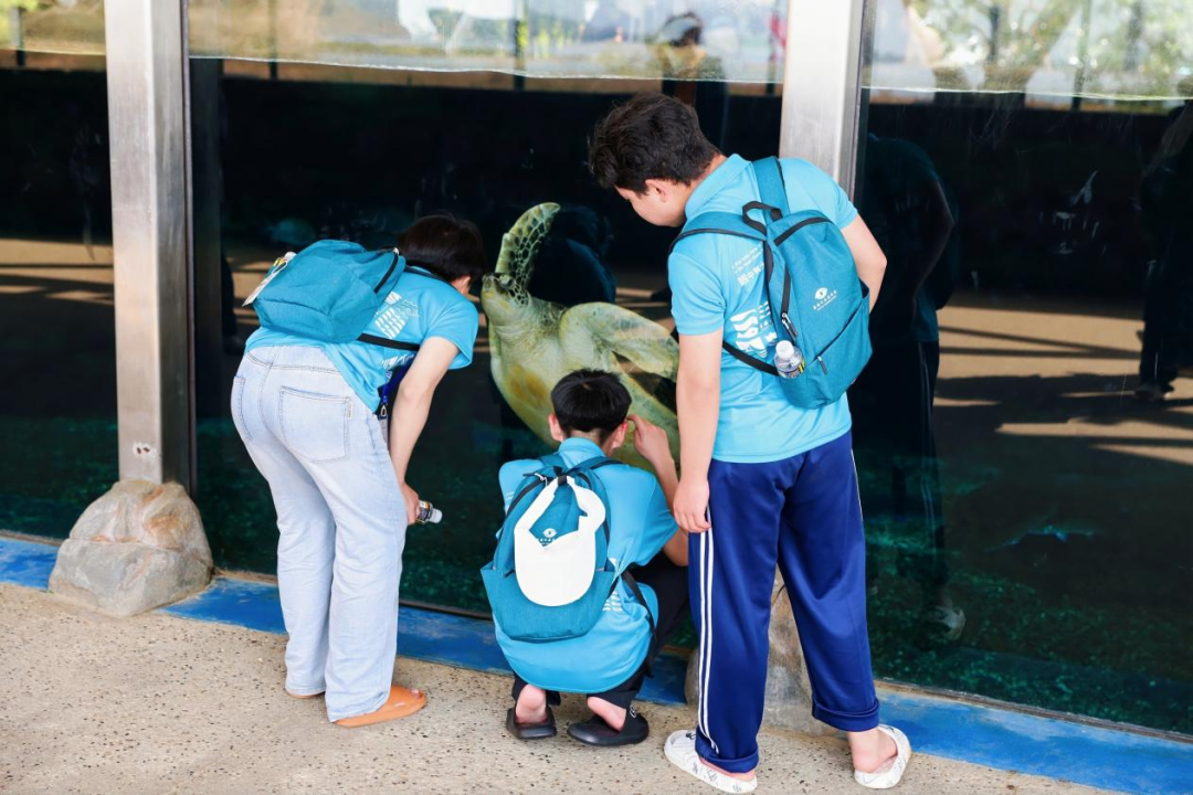 孩子们在海洋馆与海龟近距离接触。主办方供图