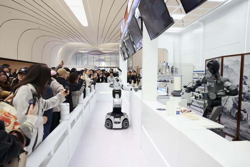 全新亮相的机器人餐吧将北京传统小吃融入轻餐饮场景,多品牌异构机器人通过统一调度平台,实现从点餐、制作到送餐的全流程自主协同作业。