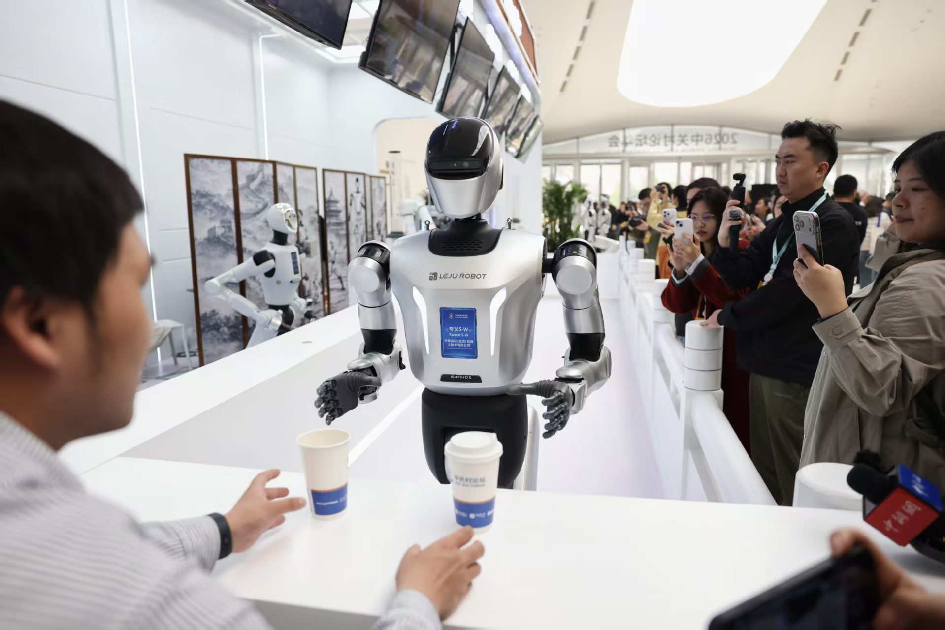 整个流程由智源研究院提供的“大脑”系统进行统一调度和协调。“用户扫码下单之后,大脑系统就会有一套自主下单、排单的逻辑,并按照这个逻辑控制不同机器人去执行、完成任务,在同一场景内实现跨品牌协同。”王强说,从扫码下单到出餐,只需1-2分钟。