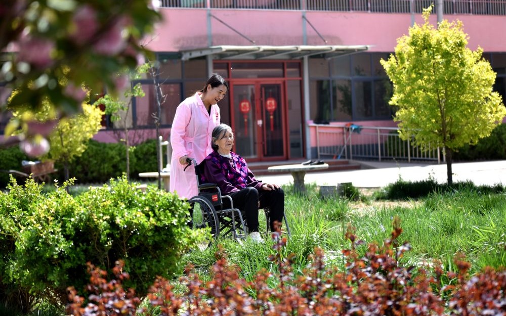 ▲在河北威县三益庄村一家养老机构,工作人员在陪护老人。图/新华社