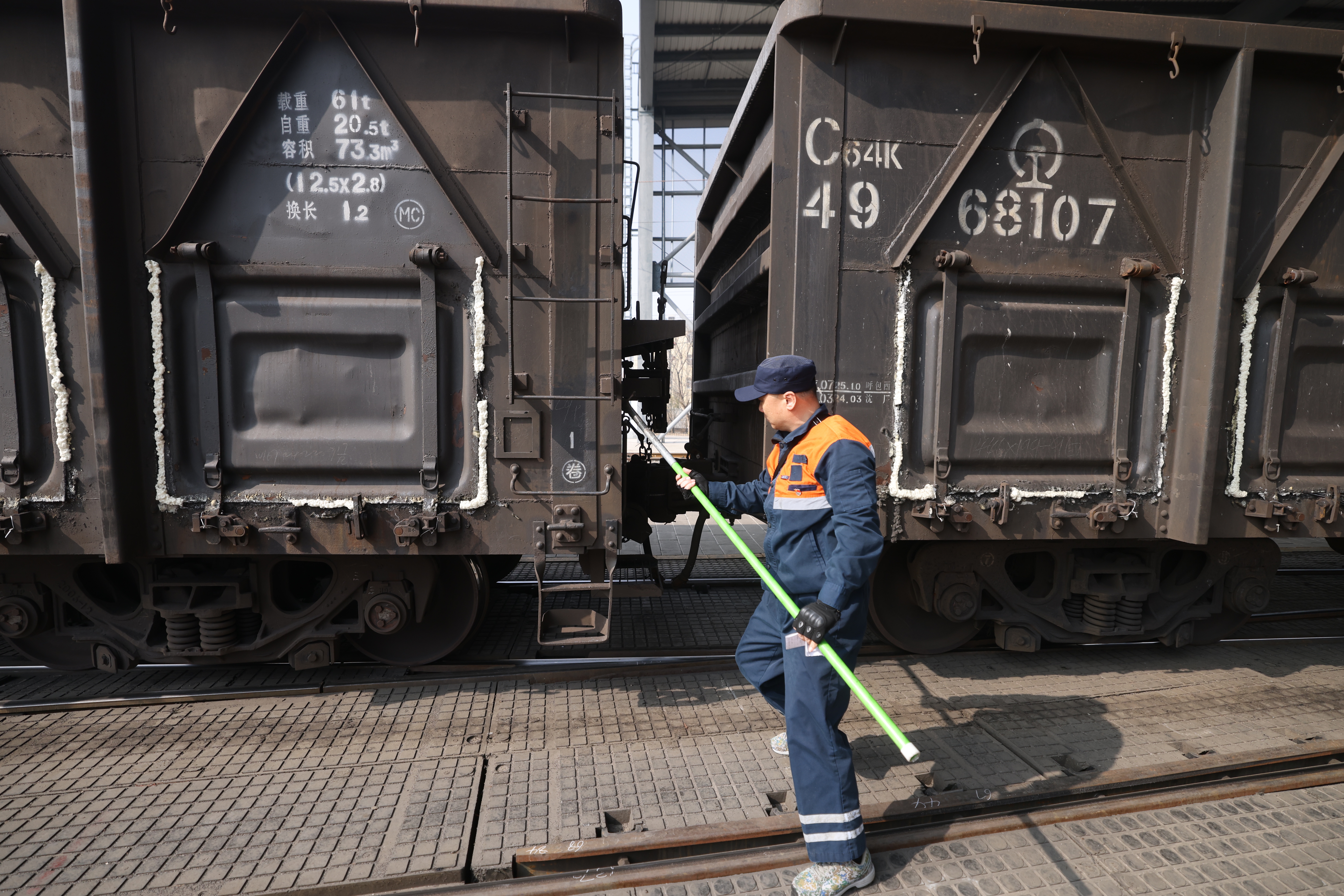 3月25日,丰台西站,一名铁路职工正在作业中。新京报记者 王贵彬 摄