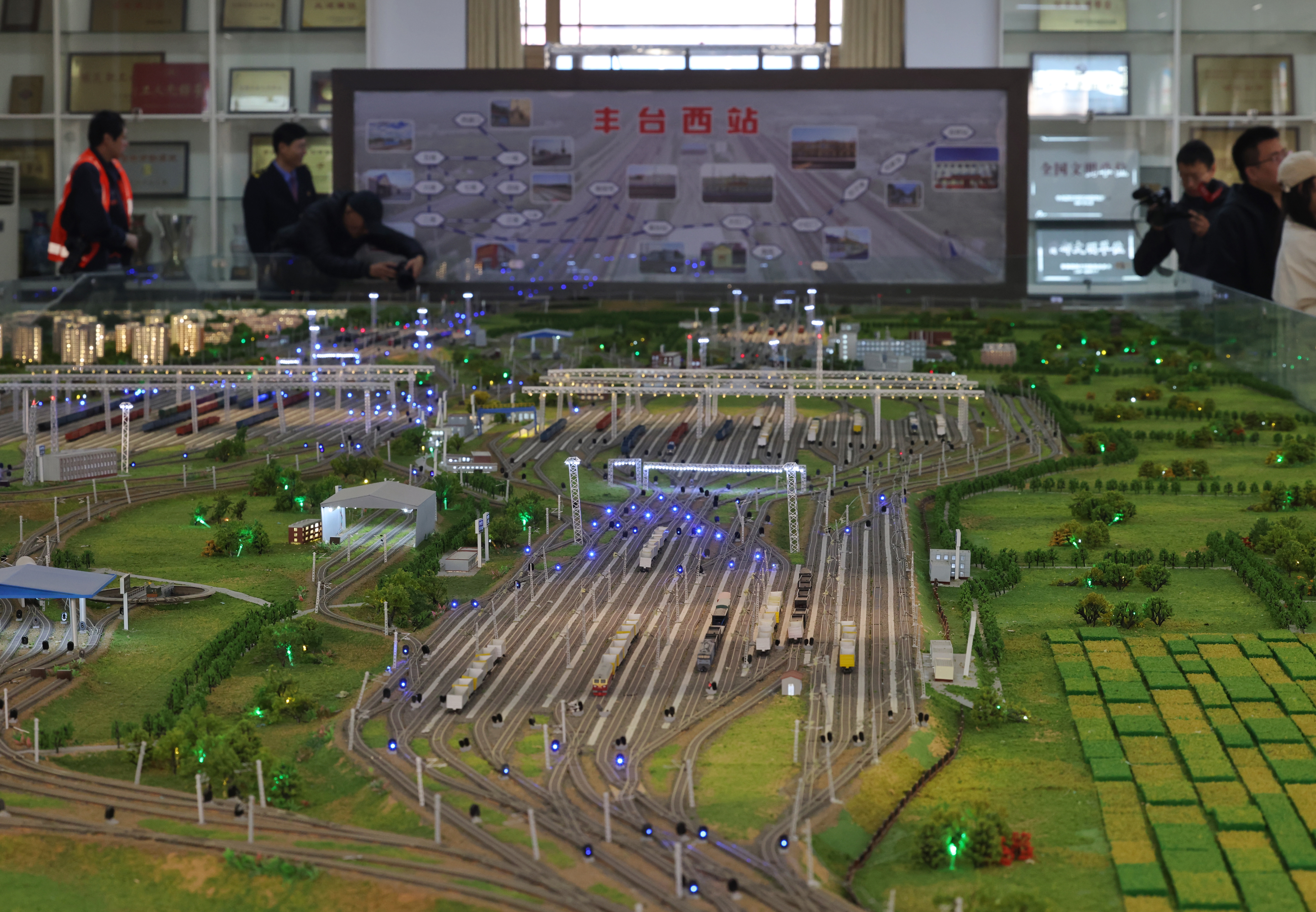 丰台西站沙盘模型,目前这座车站是拥有125条股道、连接8条干线、通达32个方向的特等站。新京报记者 王贵彬 摄