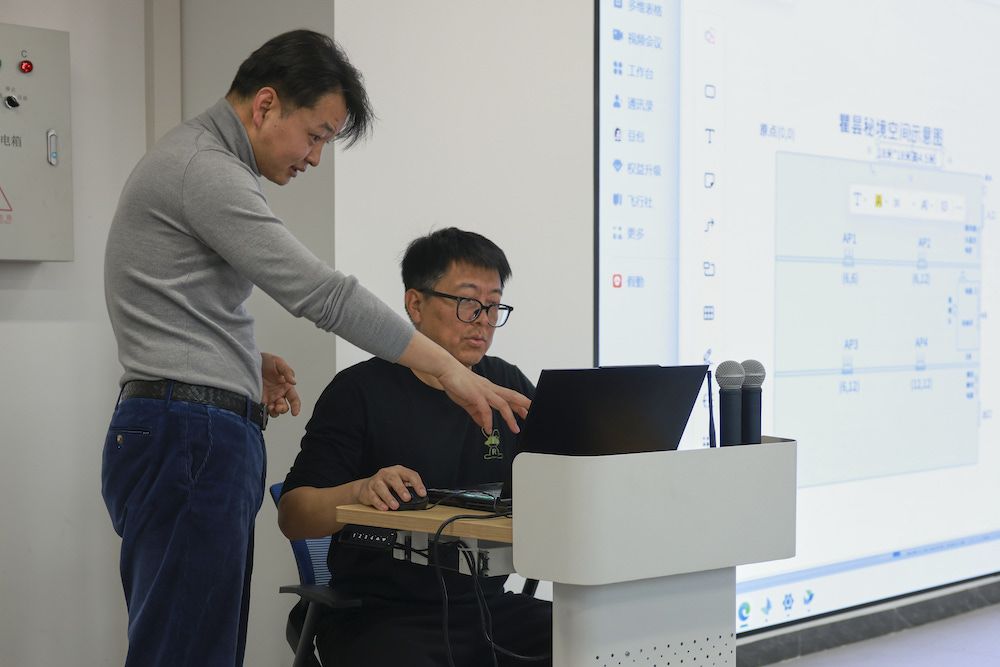 郑康乐在与技术专家讨论VR项目的实施细节。