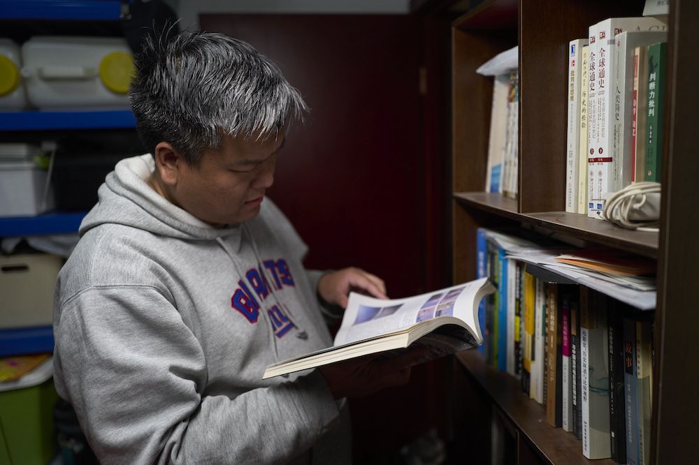 陈建在翻阅电影特效书籍。他认为即便是AI 时代,传统影视的基础知识也非常重要。