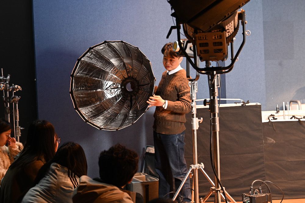 3月11日,青岛电影学院。摄影课上,郑康乐给学生们介绍传统灯光器材的使用。