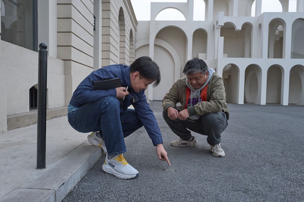 3月22日,北京通州区东古里实景基地。郑康乐和陈建现场讨论新项目的光位设计方案。