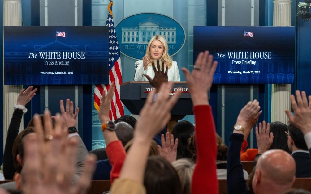 ▲3月25日,在美国首都华盛顿白宫,白宫新闻秘书莱维特在记者会上传递对伊朗的最新威胁:伊朗“如果不接受现实”和“误判形势”,特朗普“并非虚张声势”,而将对伊朗“火力全开”,发动“比以往更猛烈的打击”。图/新华社