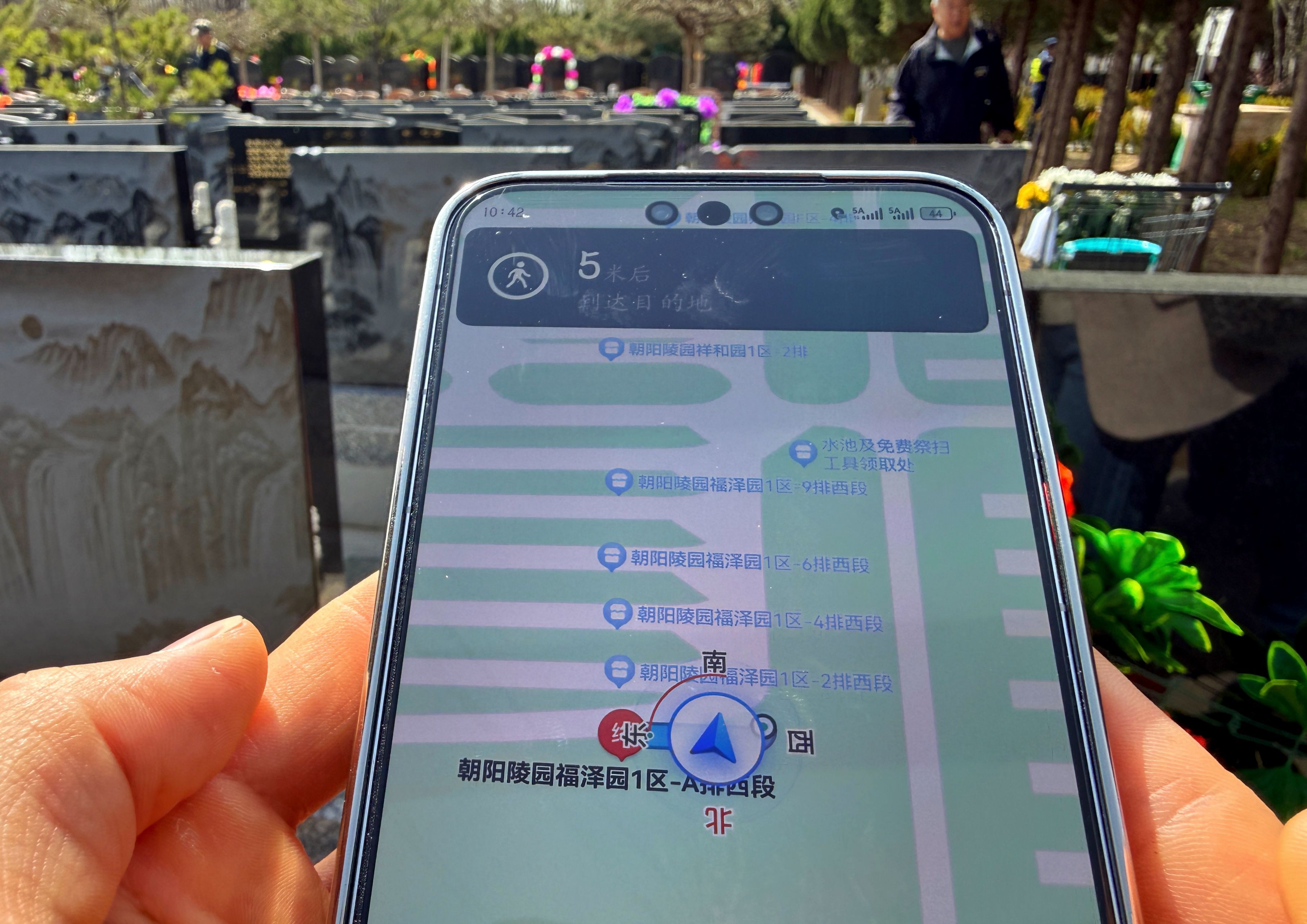 3月27日上午,记者在北京朝阳陵园看到,园区导航已经上线,市民在手机上可以直接导航到园区的任何位置,导航地图上清晰标注了公墓陵园的内部道路、墓区位置、服务设施等,市民可通过地图App,直接搜索具体墓区信息,以及园区内便民服务设施,开启手机步行导航引导至目的地。北京八宝山礼仪有限公司朝阳陵园经理李华强介绍,朝阳陵园占地面积249亩,陵园累计销售各种安葬设施2.5万余座,安放骨灰3.9万余份,园区共划分100余个功能区域,陵园面积较大,功能区多,且清明期间增设了众多服务设施和点位,导航功能可以让市民更便捷地获得需要的服务。记者还了解到,不止有朝阳陵园,北京市规模较大的市属公墓已基本实现导航功能。