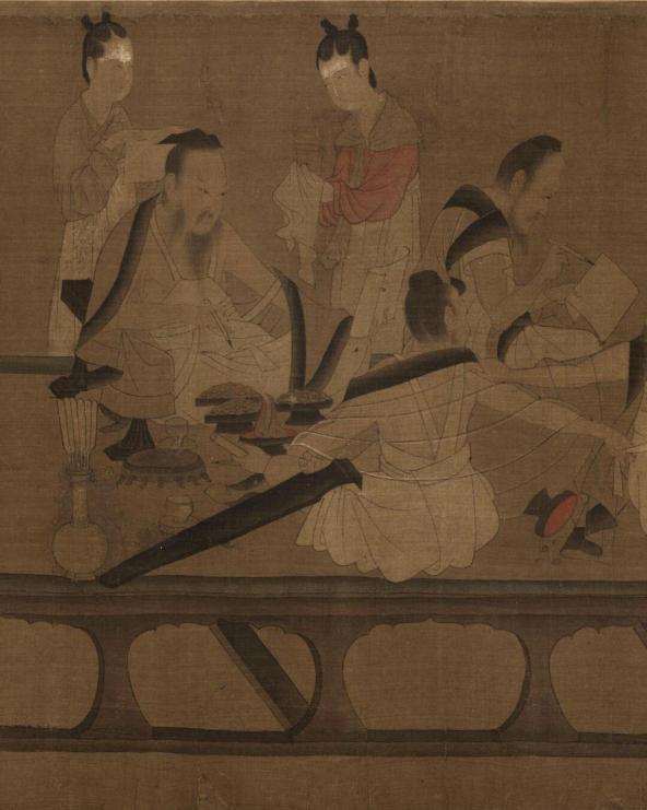 南北朝时期北齐杨子华(传)《北齐校书图卷》(宋摹本)局部,榻和古琴。