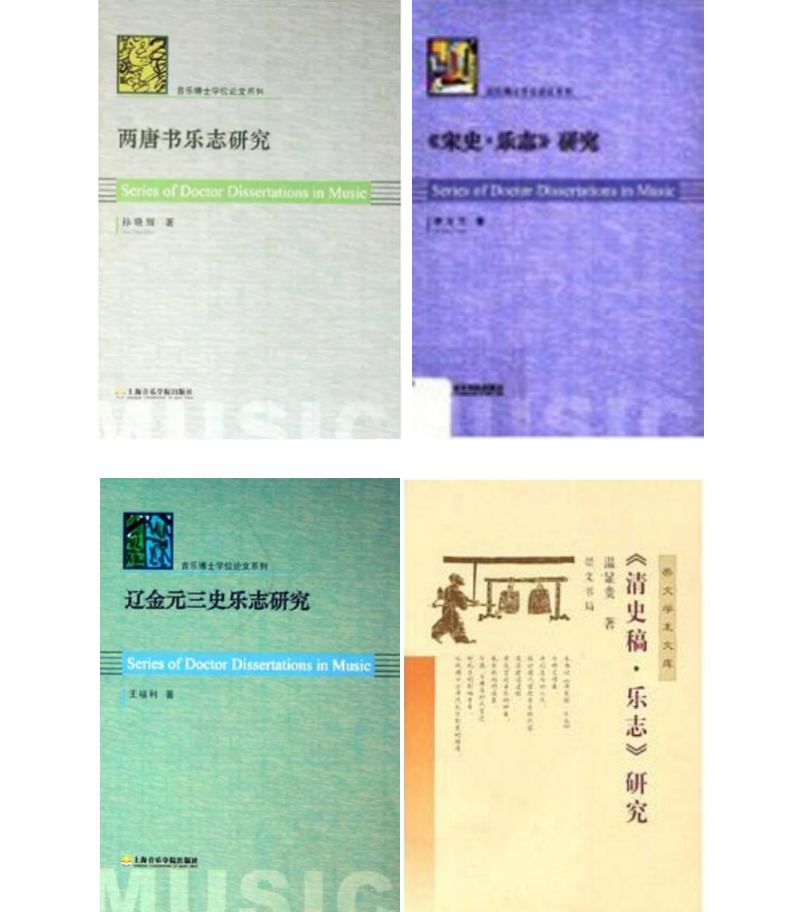 音乐文献研究方面,在本世纪初,有一些对历代乐志进行研究的体系性作品。包括孙晓辉《两唐书乐志研究》、李方元《<宋史·乐志>研究》、王福利《辽金元三史乐志研究》,以及温显贵《<清史稿·乐志>研究》。从音乐史方面讲,这一系列著作提供了贯穿性的乐制史研究。而从音乐文献研究方面讲,它们从正史乐志出发,不仅考虑到它们作为史料的作用,也考虑到它们作为文献的特质,展示了如何从文献角度对其进行研究的方法论范式。