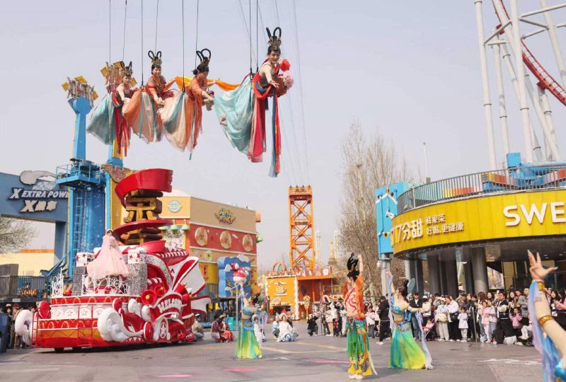 3月28日,北京欢乐谷国潮文化节启幕,活动将贯穿清明、五一、端午等多个重要节假日。图为敦煌飞天表演。