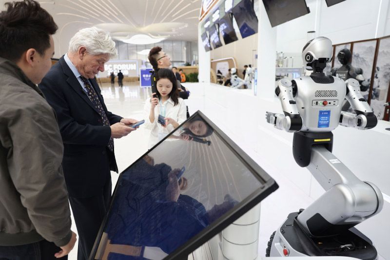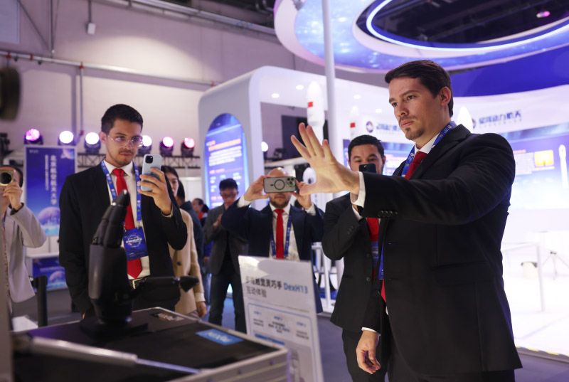 不少外国嘉宾主动咨询前沿科技产品,纷纷打卡体验。