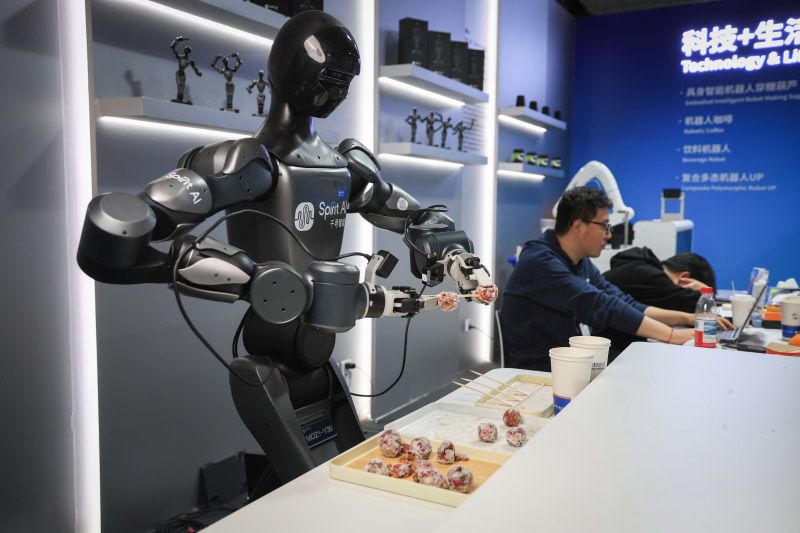 联合国前副秘书长法布里奇奥·霍克希尔德在机器人餐吧买咖啡。