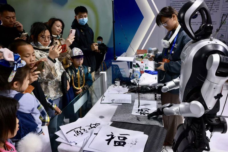 机器人书法表演。