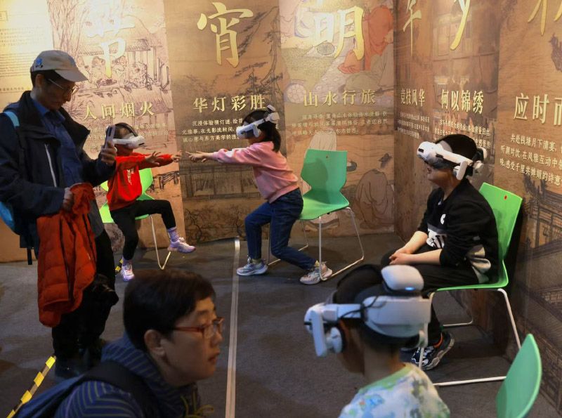 小朋友通过VR了解“中国古画里的传统节日”。