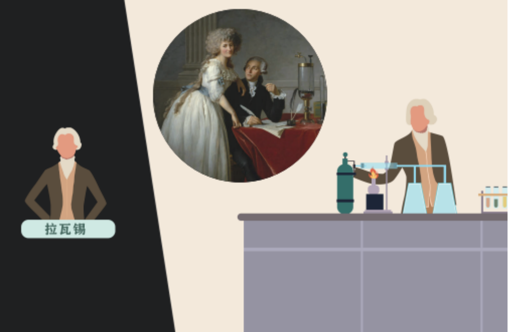 拉瓦锡出生于贵族之家,继承了巨额遗产,从小衣食无忧。家人希望拉瓦锡成为一名律师,但是他一直对化学很感兴趣,于是,在就读巴黎大学法学院之后,他仍然利用课余时间继续学习自然科学。后来,拉瓦锡取得了律师证书,还成为一家私人征税公司的老板,手头十分宽裕,他利用这些资金与自己聪慧的妻子玛丽共同打造了一个私人化学实验室,致力于化学研究。玛丽成为拉瓦锡的助手,协助他翻译文献、为他的著作绘制插图。拉瓦锡在法国大革命中被处死后,玛丽积极推广他的研究,为传播他的思想做出了重要贡献。不过,在旧版高中化学课本的插图中,拉瓦锡的妻子却被忽略掉了。