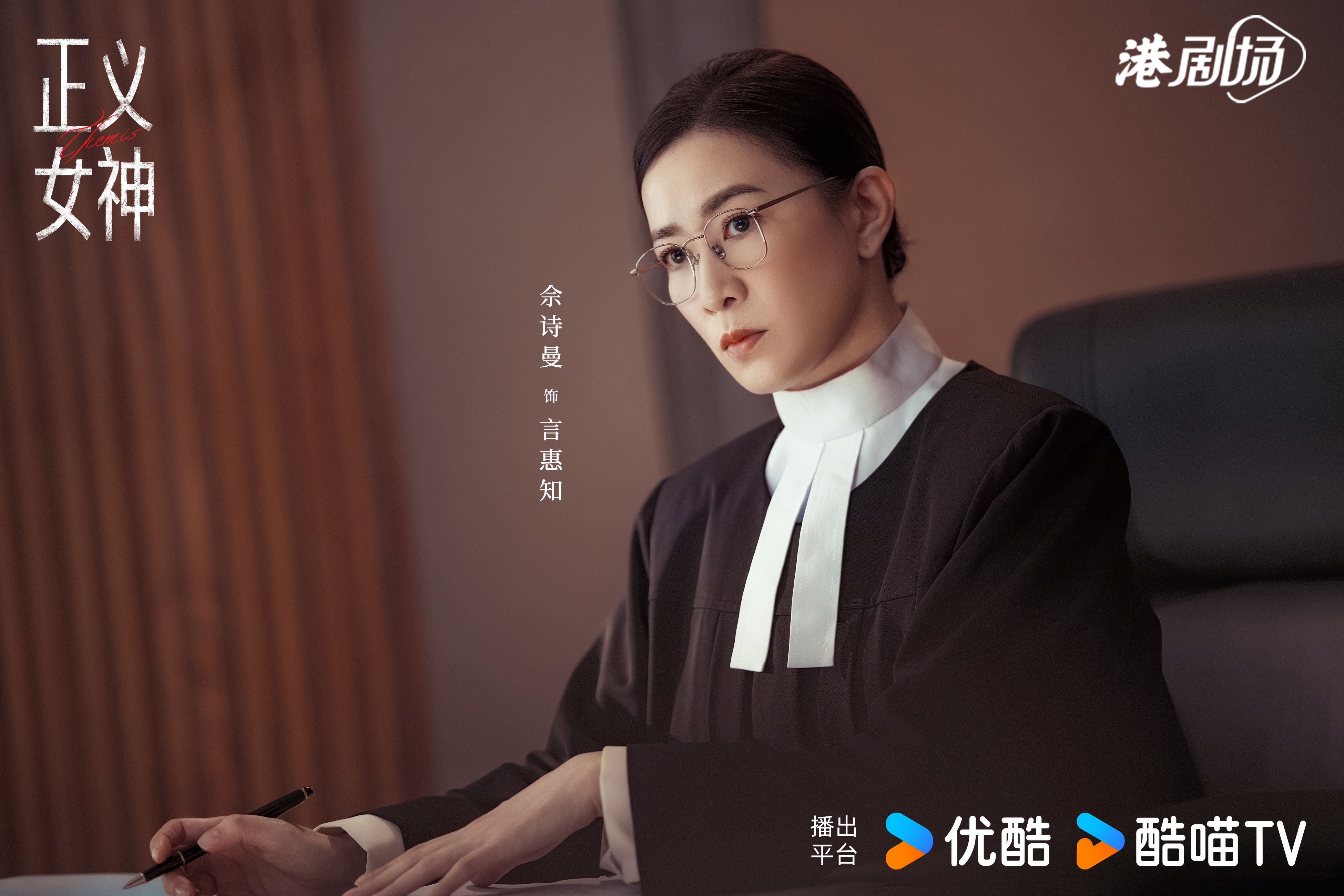 佘诗曼在律政剧《正义女神》中饰演法官言惠知。