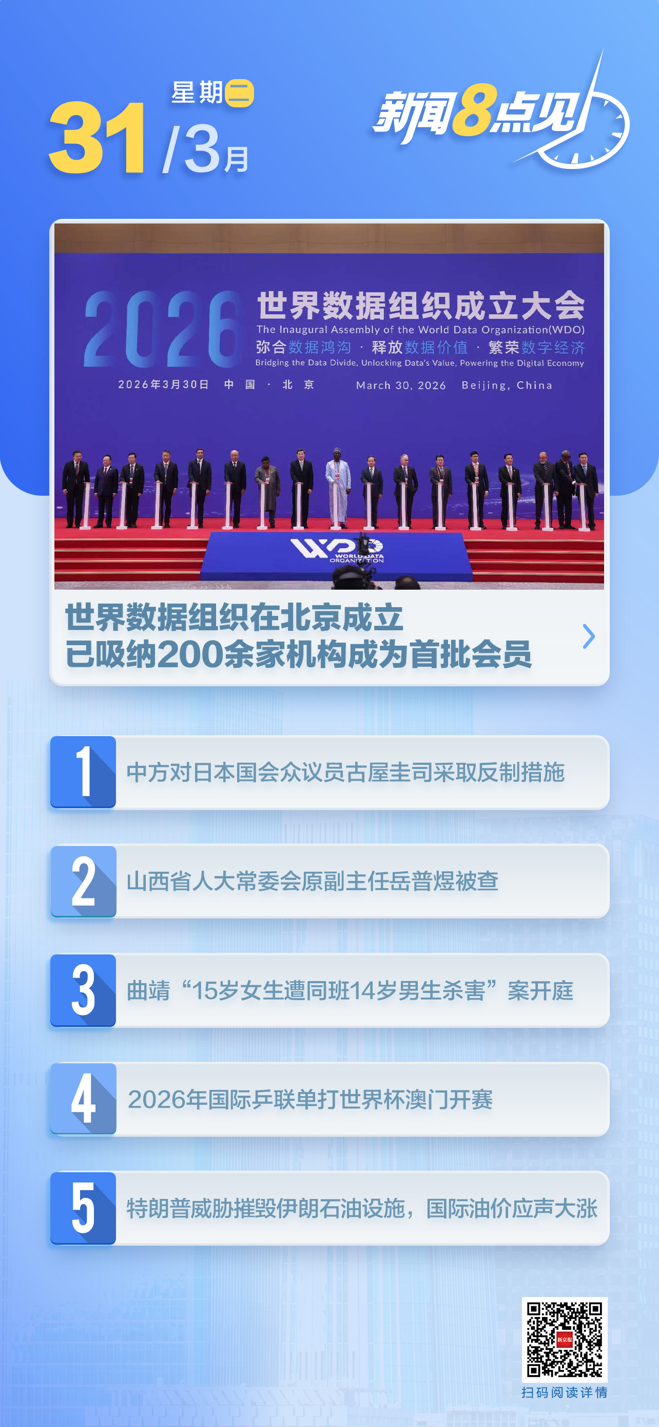 3月30日,世界数据组织正式成立,并举行揭牌仪式,其总部设在北京。世界数据组织宗旨是弥合数据鸿沟、释放数据价值、繁荣数字经济,以推动全球数据发展与治理实践,促进数据在合规、安全、可信前提下交流与利用,服务全球数字经济发展;构建了以会员大会、理事会、负责人、监事及秘书处为核心的治理体系。(新京报)阅读全文>>>