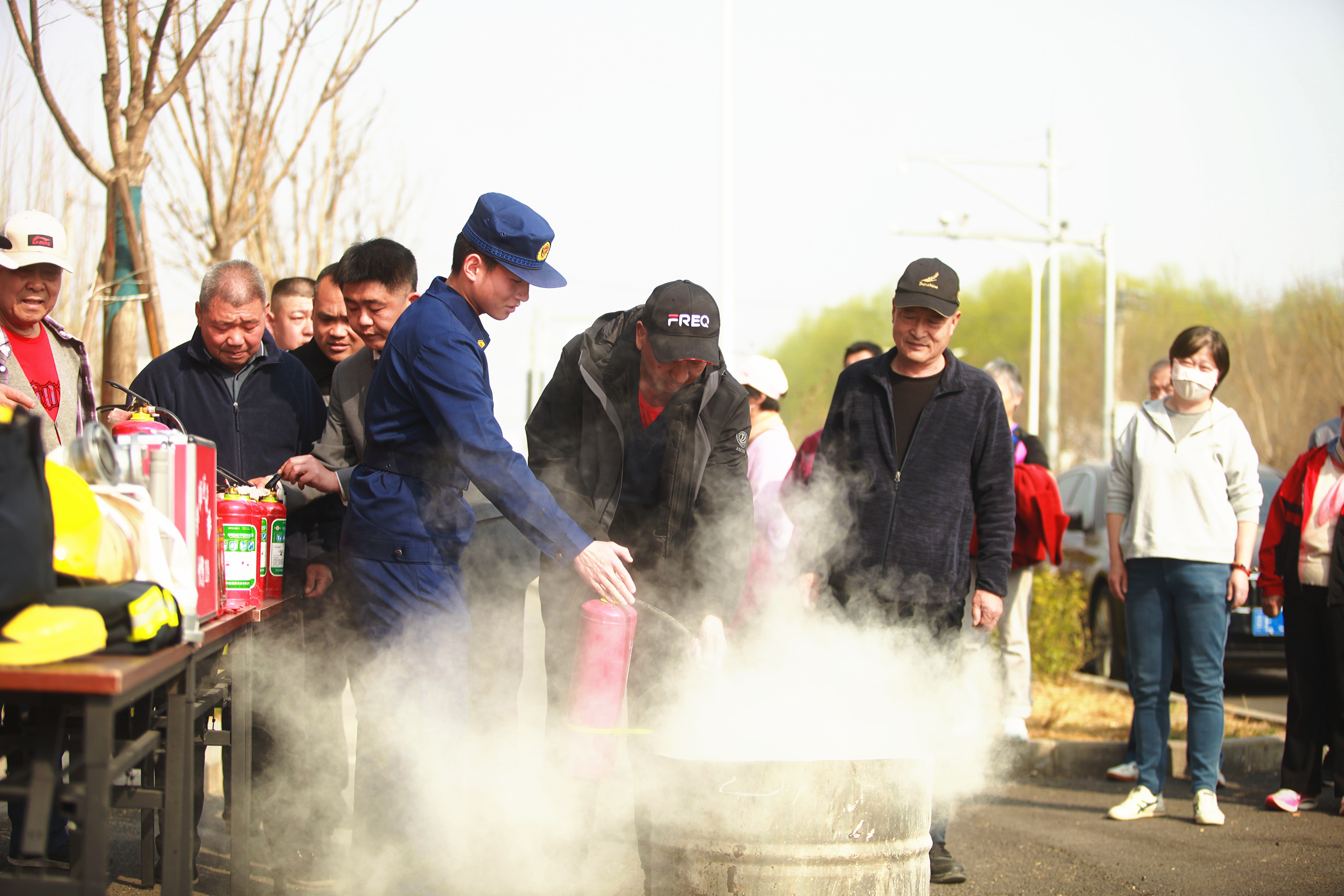 消防员手把手传授灭火器“提、拔、握、压”四字使用口诀。昌平消防供图