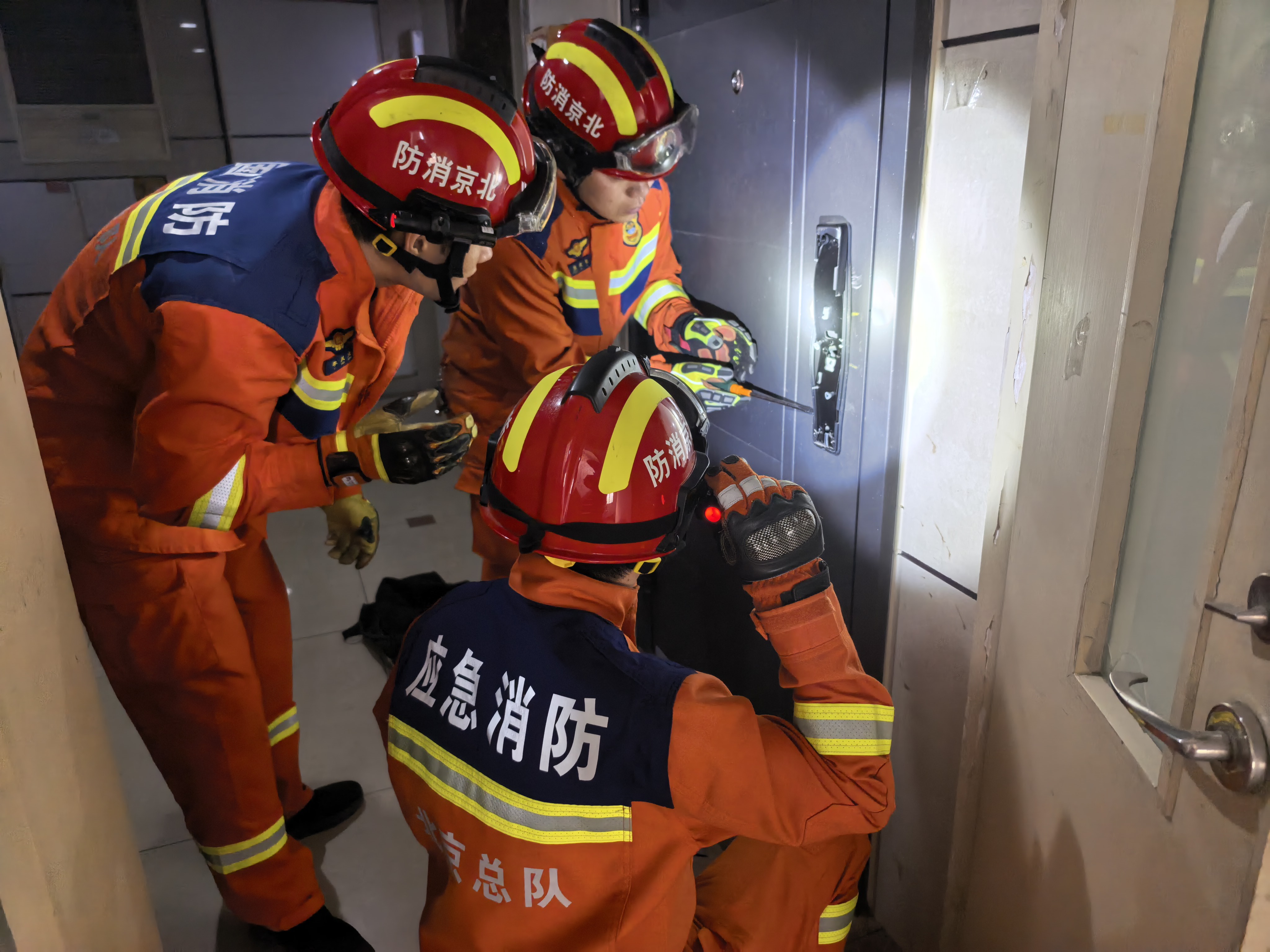 新京报讯(记者张静姝)近日,北京市东城区花市消防救援站接到一起抢险救援报警。报警人反映,自己出门倒垃圾时,家中仅留有一名三岁幼童,幼童不慎将防盗门误触反锁,家人无法从外部开启,情急之下报警求助。花市消防救援站立即出动救援力量赶赴现场。