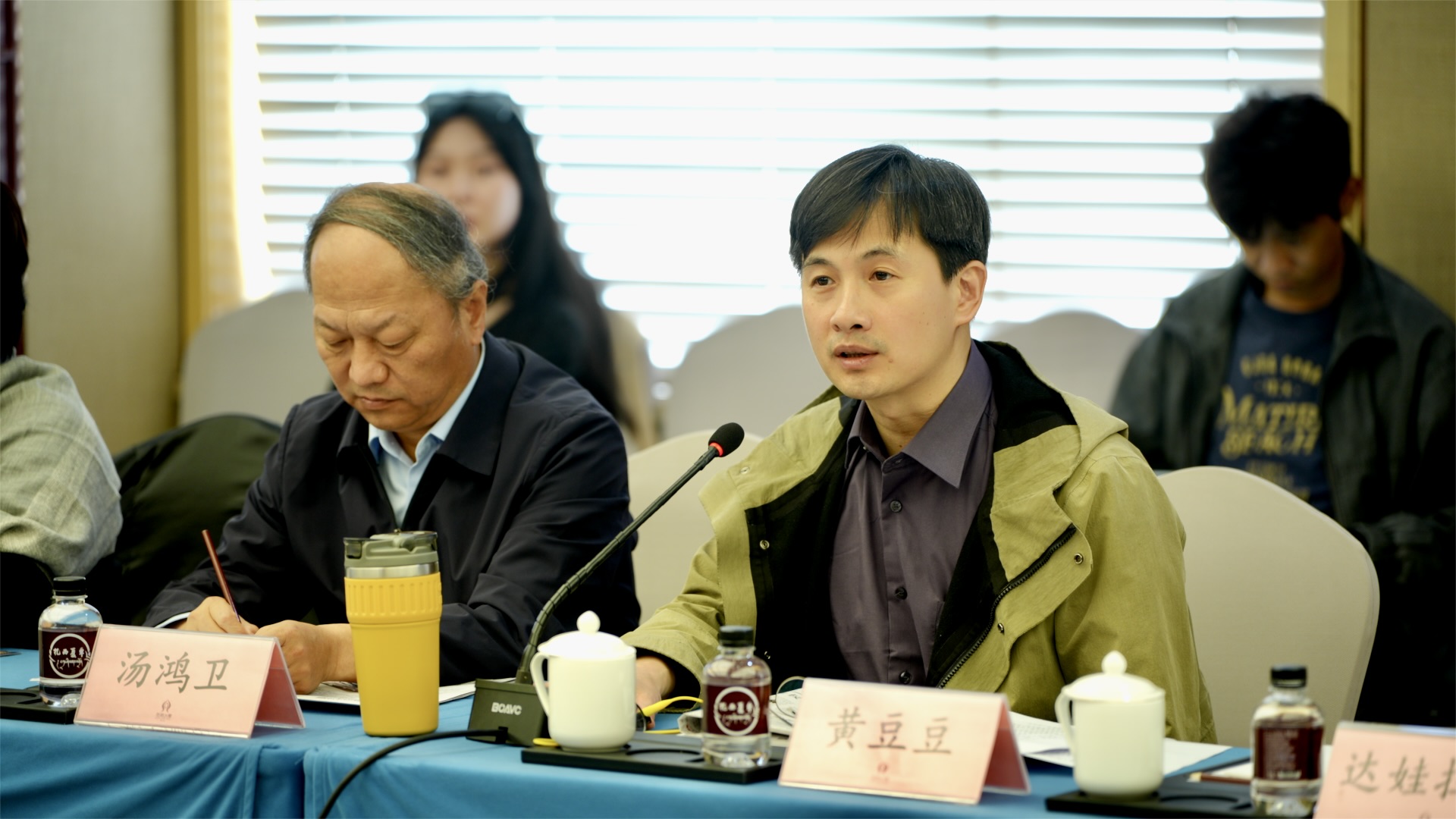中国舞蹈家协会分党组书记汤鸿卫与剧目艺术总监、中国舞蹈家协会副主席、分党组成员黄豆豆。