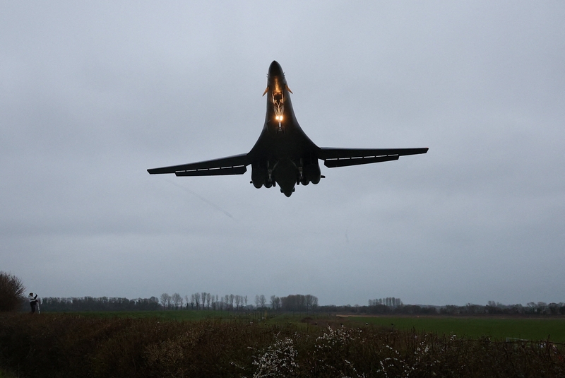 ▲当地时间2026年3月6日,英国格洛斯特郡费尔福德,一架美国B-1战略轰炸机抵达英军基地。图/IC photo