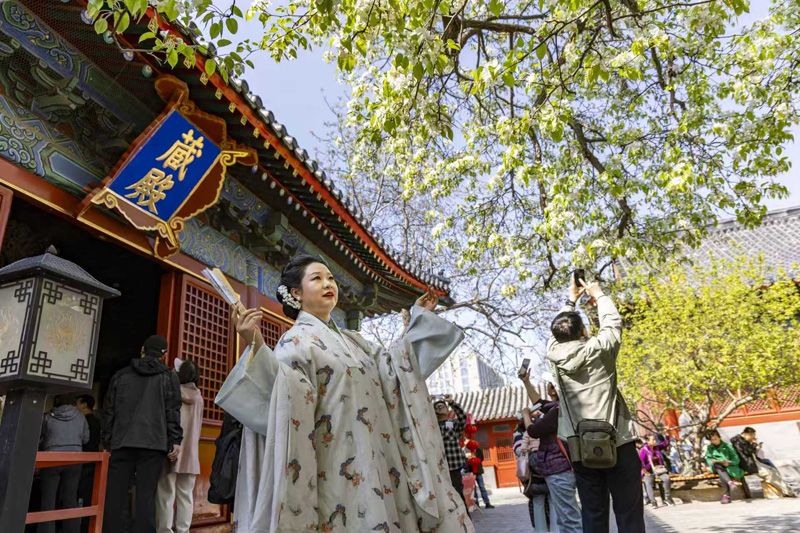 近日,北京东城区禄米仓胡同内的智化寺迎来梨花盛花期。寺内两株近六百年的明代古梨树繁花满枝,雪白梨花与红墙古建相映成趣,勾勒出独属于京城的春日诗意。作为北京保存最完整的明代木结构建筑群,智化寺梨花已成为春日赏花名片。景区实行限流预约参观,最佳观赏期将持续至4月初。
