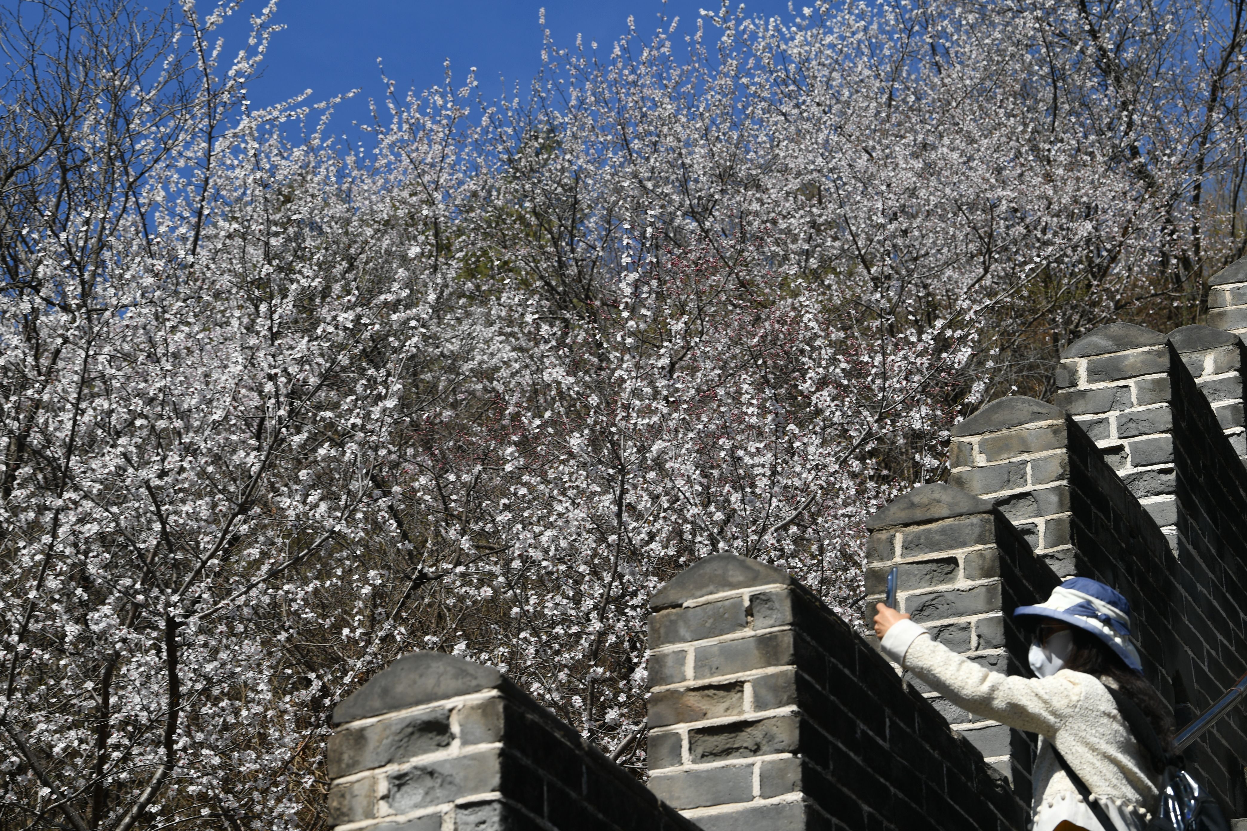 4月1日,市民游览长城。新京报记者 陶冉 摄