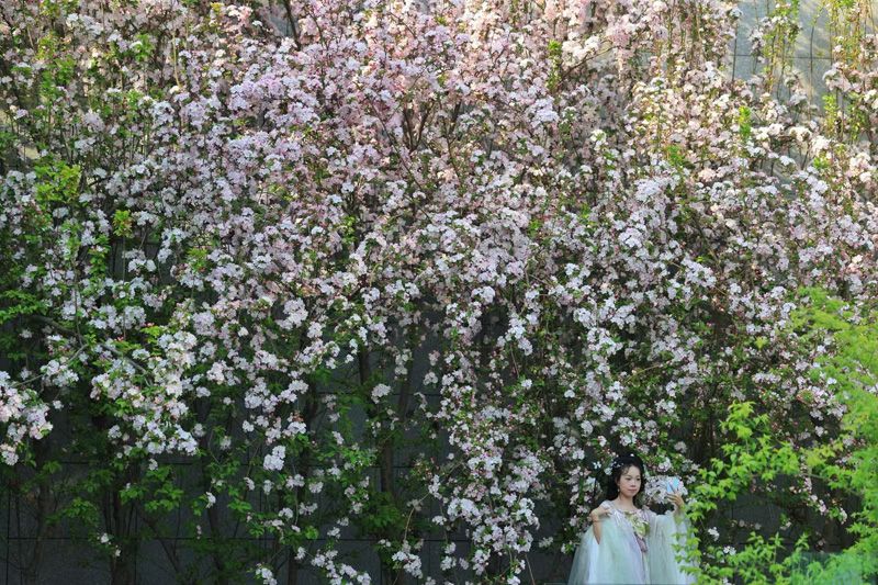 春满京城 | 地铁口海棠花墙惊艳市民