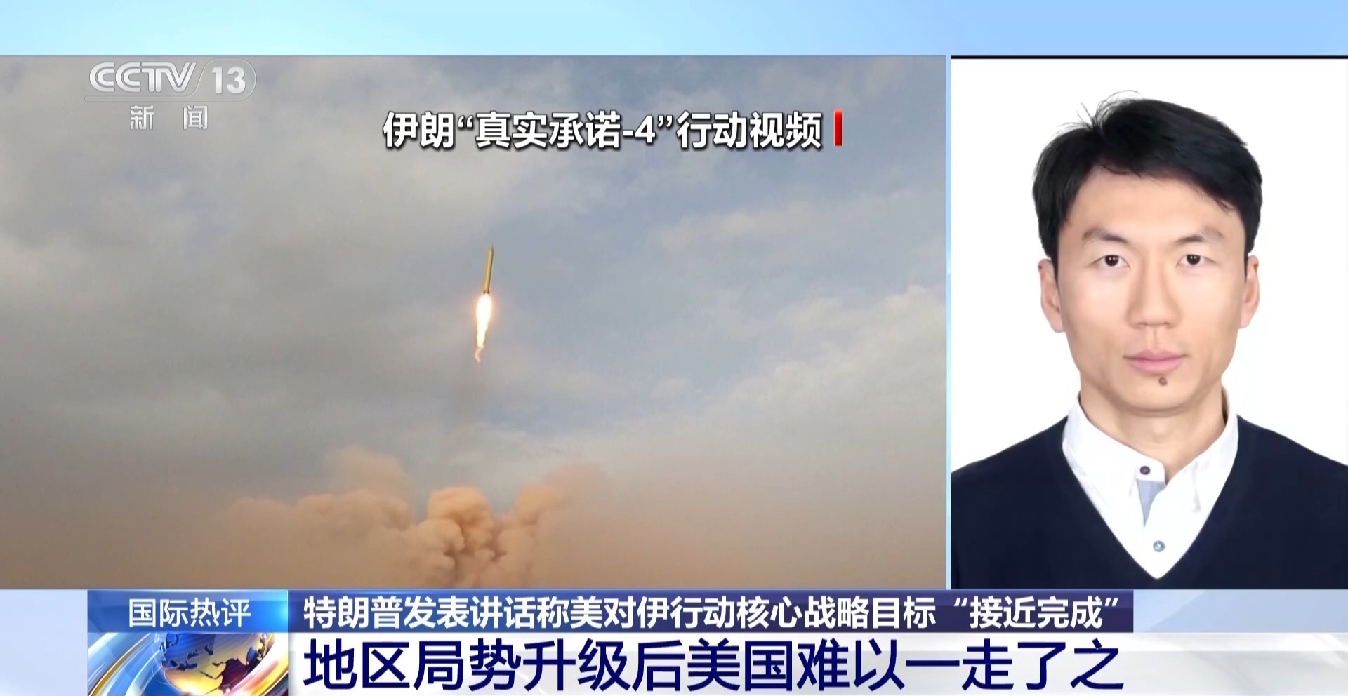 总台新闻观察员 王昆鹏:当前无论是国际社会还是美国国内,对特朗普政府发起的针对伊朗的战争实际有着非常大的质疑和反对声音。特朗普政府为了降低国内政治和经济压力,有意迅速从冲突中抽身。但抽身之前,必须做好所谓“胜利”铺垫。此次演讲表态中“取得压倒性胜利、伊朗军事能力遭重创”等叙述,就是在为这种所谓“胜利”进行铺垫和舆论战。