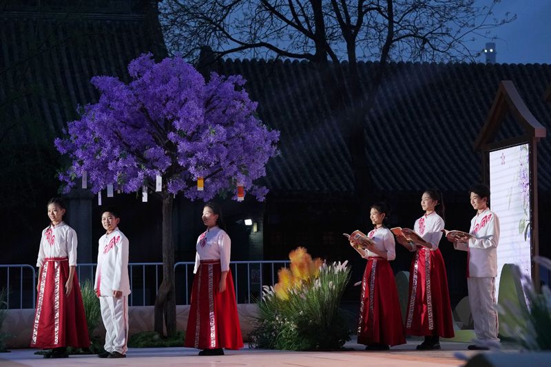 来自9个国家的留学生在《声律启蒙》的旋律中,感受中华诗词之美。据了解,西城区将持续打造法源寺、佑圣寺两大诗歌地标及大观园诗意园林。