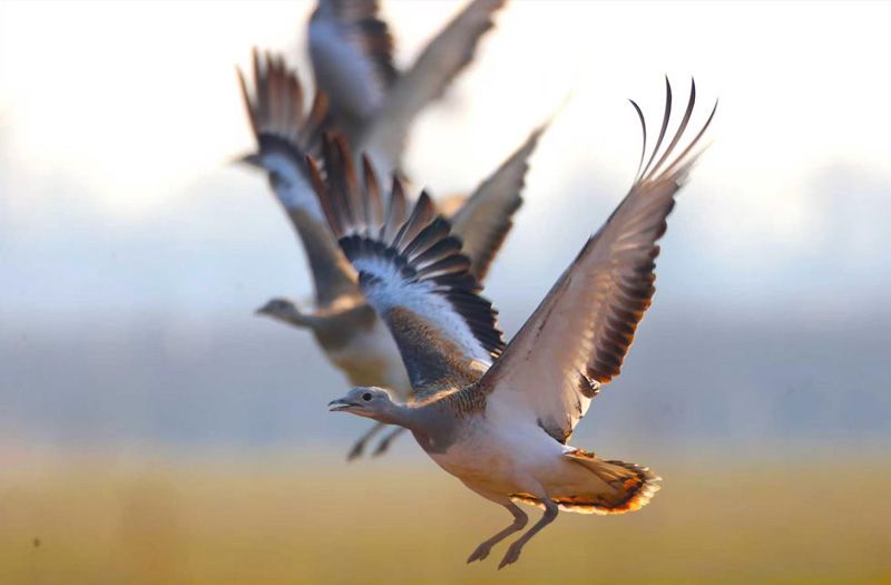 大鸨起飞。