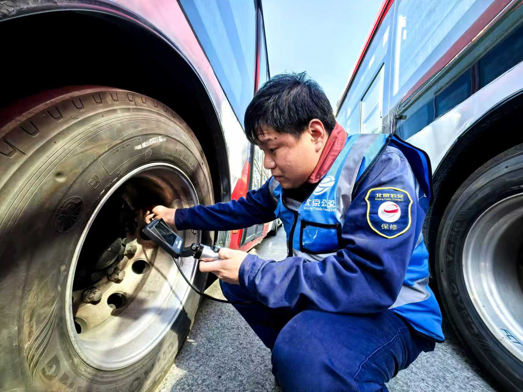 在南彩公交场站,保修分公司十一车间保障队员开启全天技术巡查模式,手持检测工具,对途经顺义潮白陵园的常规公交线路及临时加车逐辆开展“上车体检”,重点排查制动系统、转向系统、轮胎胎压、电路油路等关键部件,细致检查车辆残疾踏板、车门、电子路牌等设施。队员们穿梭在车辆之间,弯腰检测、探身排查,不放过任何细微隐患,同步做好驾驶员问修登记,快速处置小故障、小问题,确保车辆平稳运行。
