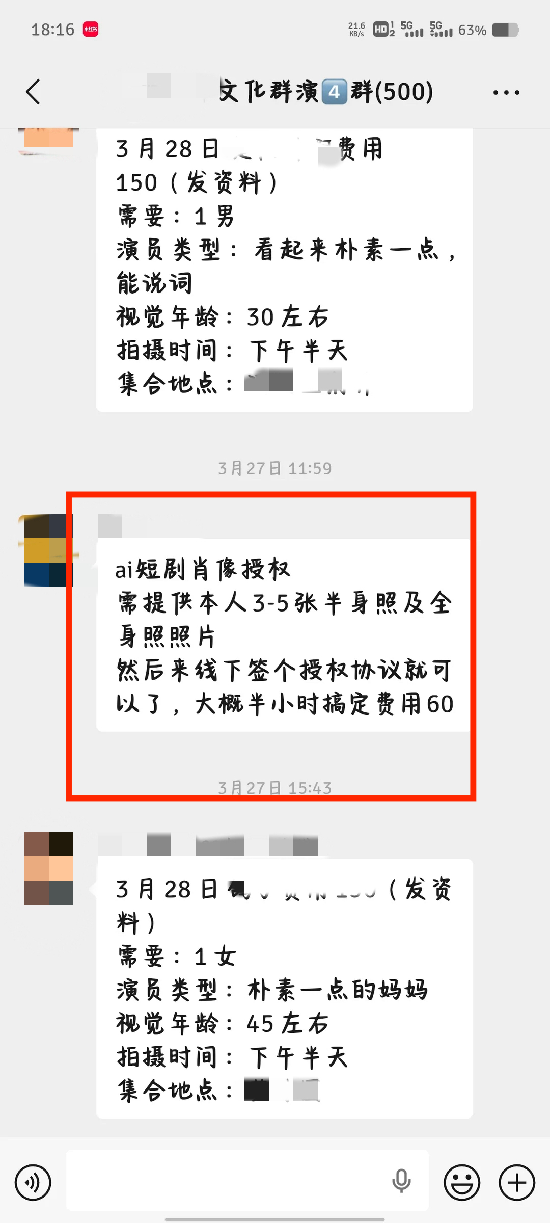 群演珂珂告诉新京报记者,群演群中已经出现60元的“AI短剧肖像授权”。 受访者供图