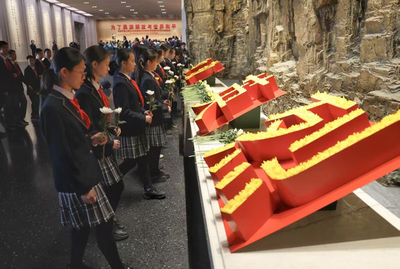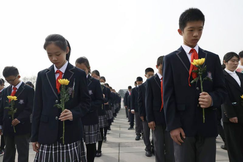 全体人员列队向抗战英烈献花。据了解,“清明节的铭记”主题教育系列活动,是中国人民抗日战争纪念馆长期打造的爱国主义教育品牌。自2009年起,抗战纪念馆已连续17年在清明期间举办该活动,累计参与人次超十万。