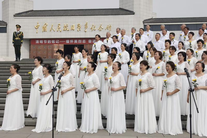 抗战纪念馆志愿者合唱团演唱《祖国不会忘记》。