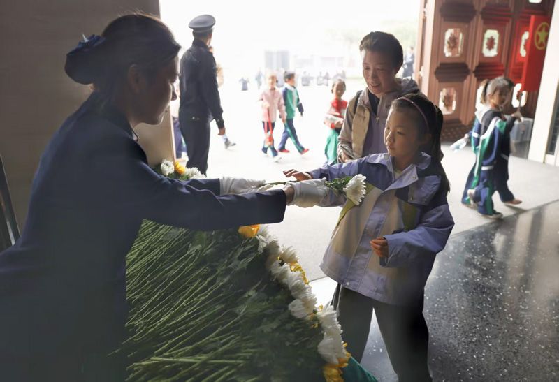 清明节期间,抗战纪念馆为前来缅怀先烈的市民提供免费鲜花。