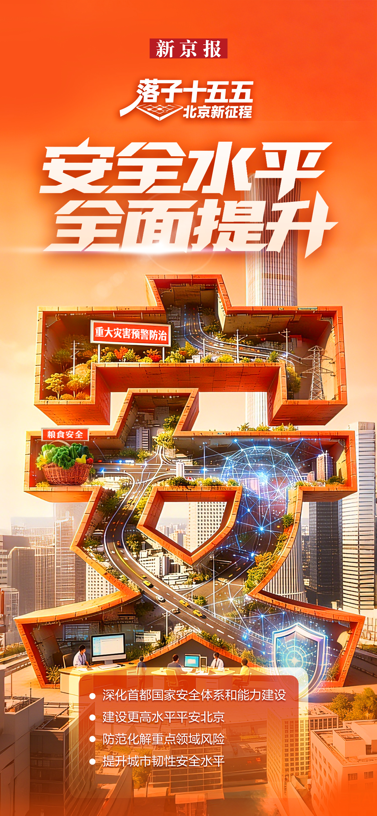 4月8日,北京市“十五五”规划纲要全文发布。“十五五”时期是北京基本实现社会主义现代化夯实基础、全面发力的关键时期,规划纲要系统谋划了未来五年的发展蓝图和重点任务。新京报第一时间梳理规划纲要,通过“都、产、人、城、安”五个关键字制作系列海报,帮您速览规划纲要的核心要点。