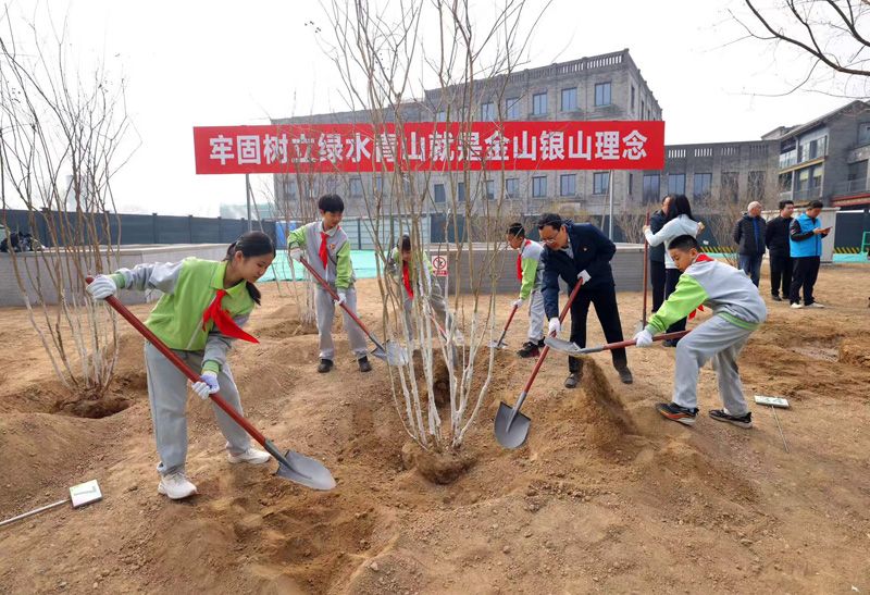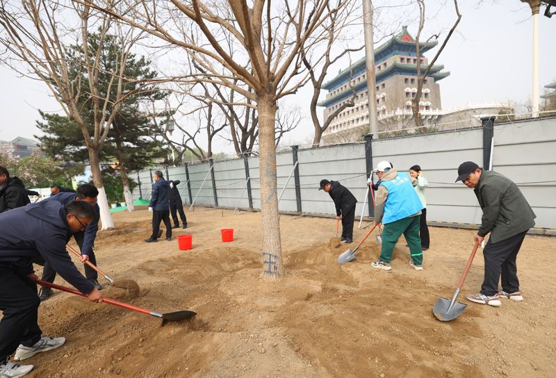 前门月亮湾绿地添新绿,东城区开展义务植树活动