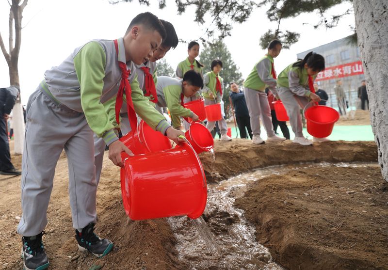 小学生代表为树木浇水。除主会场外,在箭楼东侧绿地,前门街道代表、社会单位代表、劳模、最美家庭、社区青年汇代表等约40人共同参与义务植树种植活动。同时,地坛公园、龙潭公园作为公园系统义务植树尽责活动的主会场,联动义务植树基地、绿化一队、绿化二队、园艺驿站开展八大类47种义务植树尽责活动。