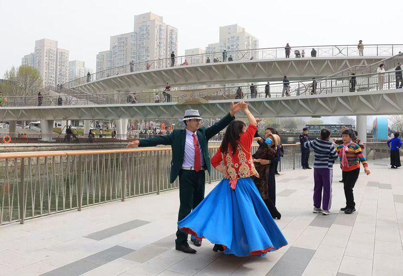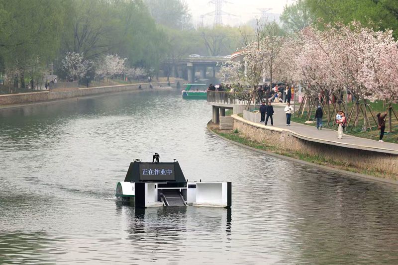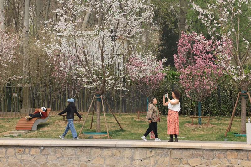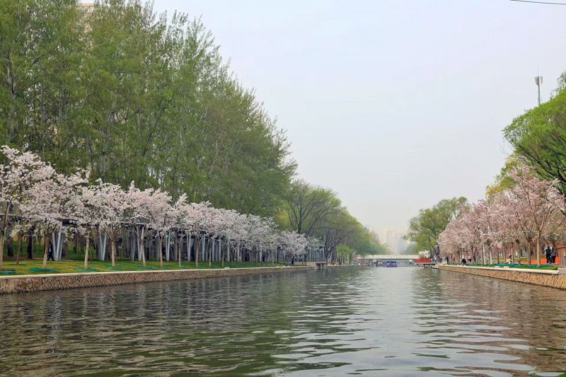 春日的北小河花团锦簇,北小河公园、大望京公园、望和公园栽植樱花近6000株、海棠超2200株,粉白樱花与娇艳海棠相互映衬,形成“樱花水岸”与“海棠花溪”两大主题景观带。