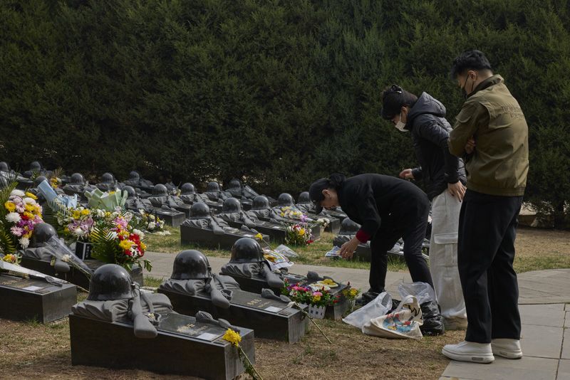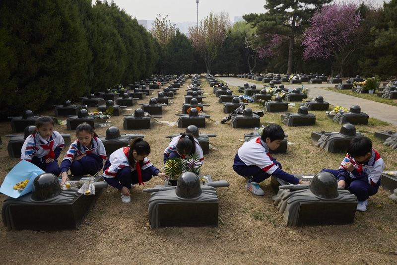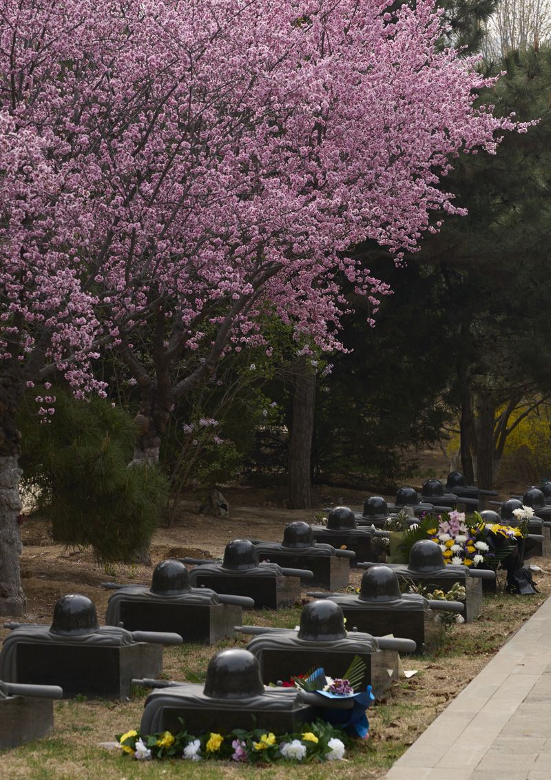 4月3日,清明时节,八宝山革命公墓,烂漫的花枝掩映着一排排庄严肃穆的烈士墓碑,苍松翠柏环绕其间,生机与肃穆交融。各界群众、师生在此寄托哀思,让春光与红色丰碑相映成辉。