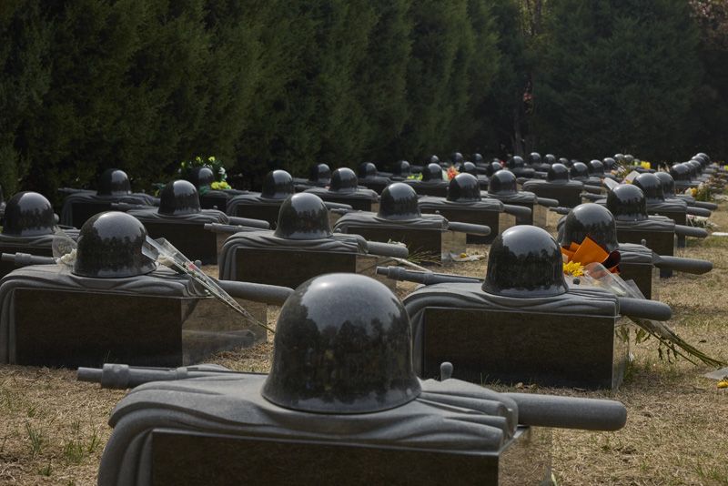烈士墓碑庄严肃穆,整齐排列。