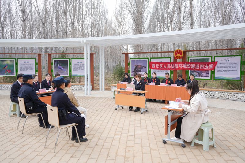 4月3日,密云法院巡回审判法庭来到密云区溪翁庄镇林长制示范林区,采取七人合议制对一起非法狩猎罪刑事附带民事公益诉讼案件进行了公开审理,北京市人大代表段小龙、溪翁庄小学“小水滴”志愿服务队及部分保水护林网格员全程旁听了案件审理。
