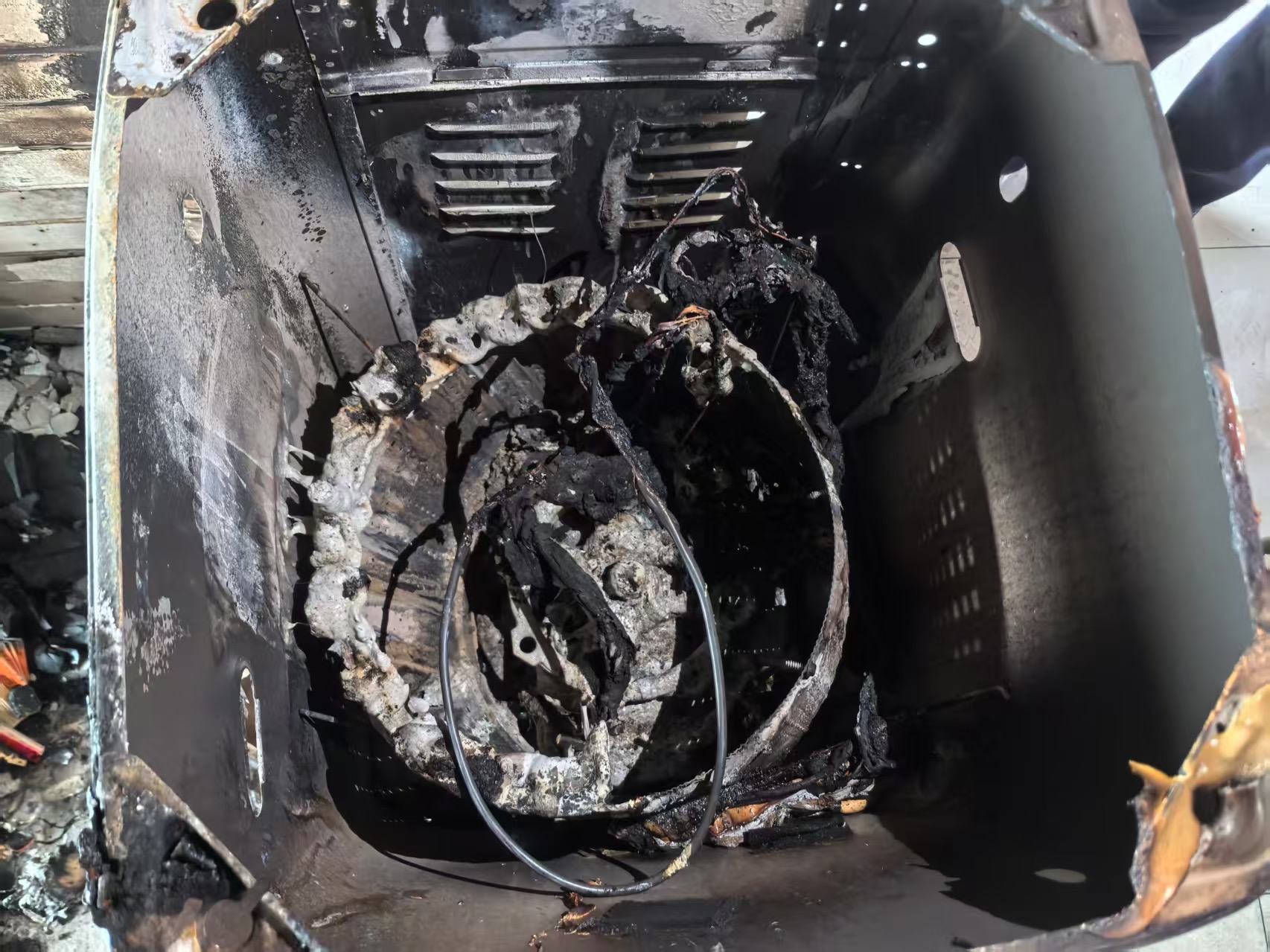 被烧毁的洗衣机。大兴消防供图