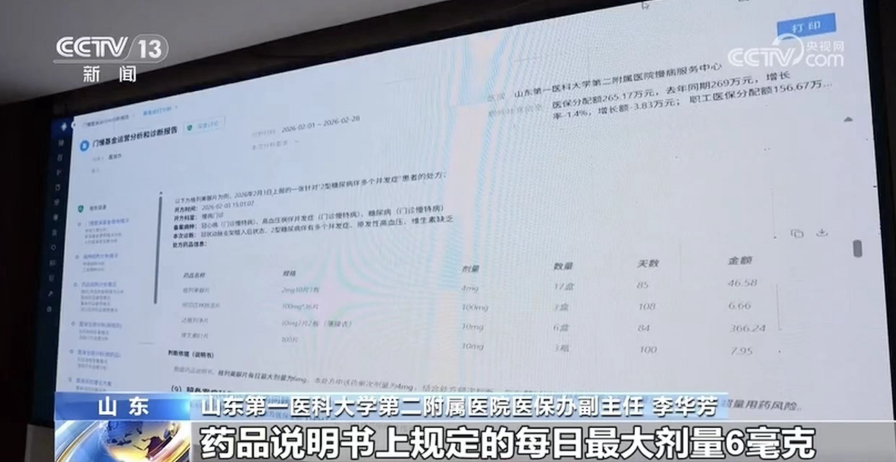 在山东第一医科大学第二附属医院,医保办工作人员正依托月度AI分析报告,针对超量用药、重复用药、超适应症用药等问题进行专项通报。“上个月3日,慢病门诊给糖尿病患者开出的格列美脲片用量,超过了药品说明书上规定的每日最大剂量6毫克,属于超量用药,请查实整改。”